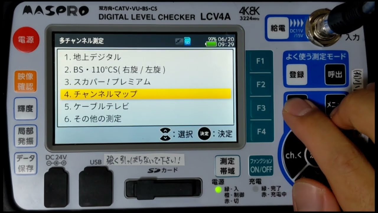マスプロ電工LCV4Aで多チャンネル測定を行い、そのデータをBluetoothでPCに保存します。保存したデータをマスプロ電工LCV4Aデジタルレベルチェッカーデータ集計ソフトでまとめています。