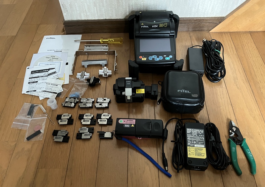 こちらのセットに融着接続機(S124M4 )をはじめ、バッテリ2個(S943B)及びバッテリチャージャー(S958C)、ホットストリッパ(S218R)、光ファイバストリッパ(S-210)、光ファイバカッター(S326)、搬送治具(TRP-01)、ドロップケーブル搬送ホルダ(TRH-01)、取扱説明書(S124M4、搬送治具、ドロップケーブル融着接続方法、0.5心線4心一括融着接続方法)、無水エタノール、清掃ガーゼ、光ファイバホルダ712シリーズがございます。 |