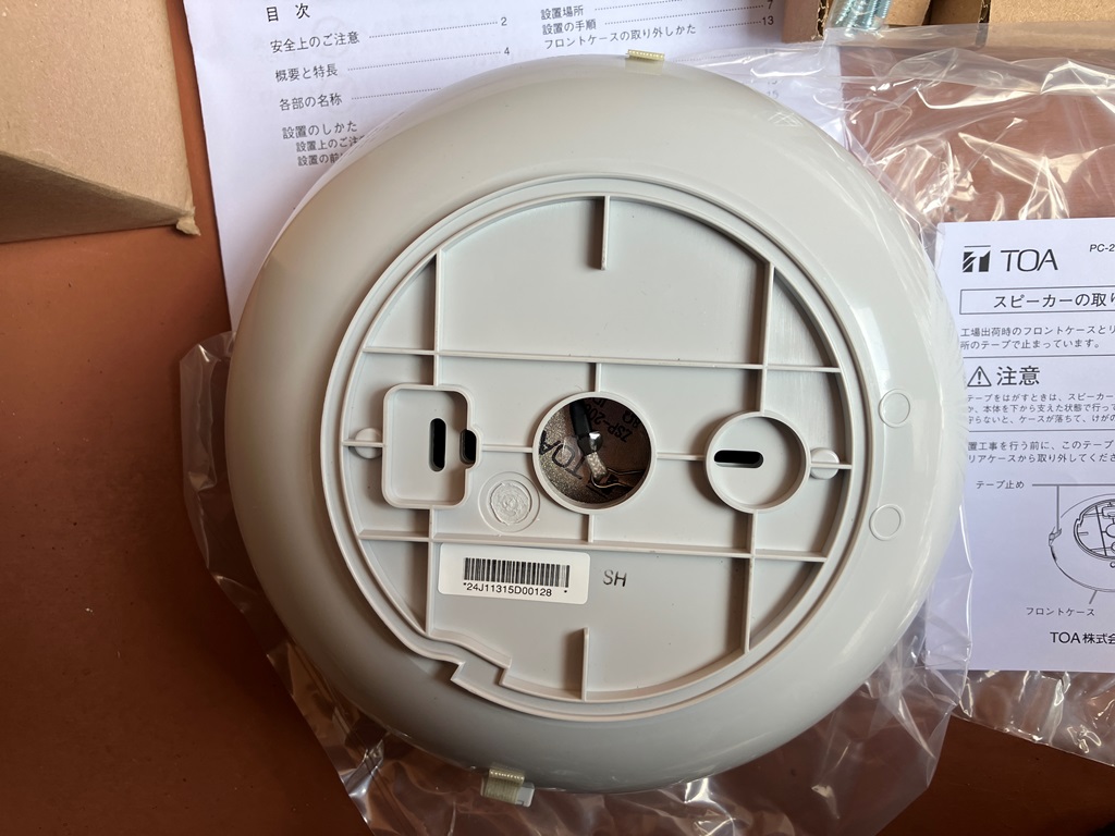 定格入力3 W(100系)の防滴天井露出型スピーカーです。小型でインテリア空間に調和するデザインを採用しています。防水性能はIPX4で、風雨が直接当たらない廊下、軒下等への施工ができます。入力端子はプッシュイン式になっており、接続が簡単で送り配線や分岐配線にも対応できます。入力変更は、トランスタップを差し換えることで簡単に行えます。トランス式の音量調節器で、5段階に音量が調節できます。本機はリアケース付きの背面が閉じられた構造になっており、性能や音質など設置場所による影響を受けません。